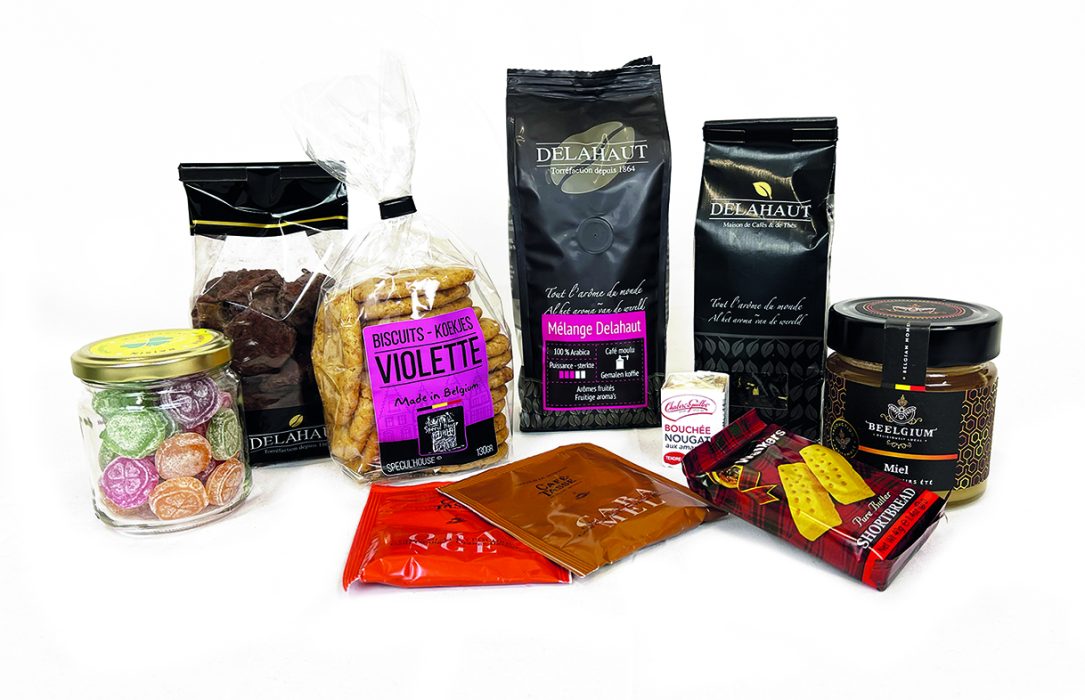 - een zakje koekjes van de ambachtelijke Belgische koekjesfabriek "Specul'house" (gevarieerde smaken; violet, praline, espresso...)